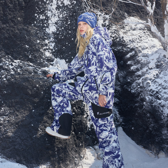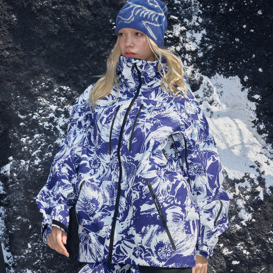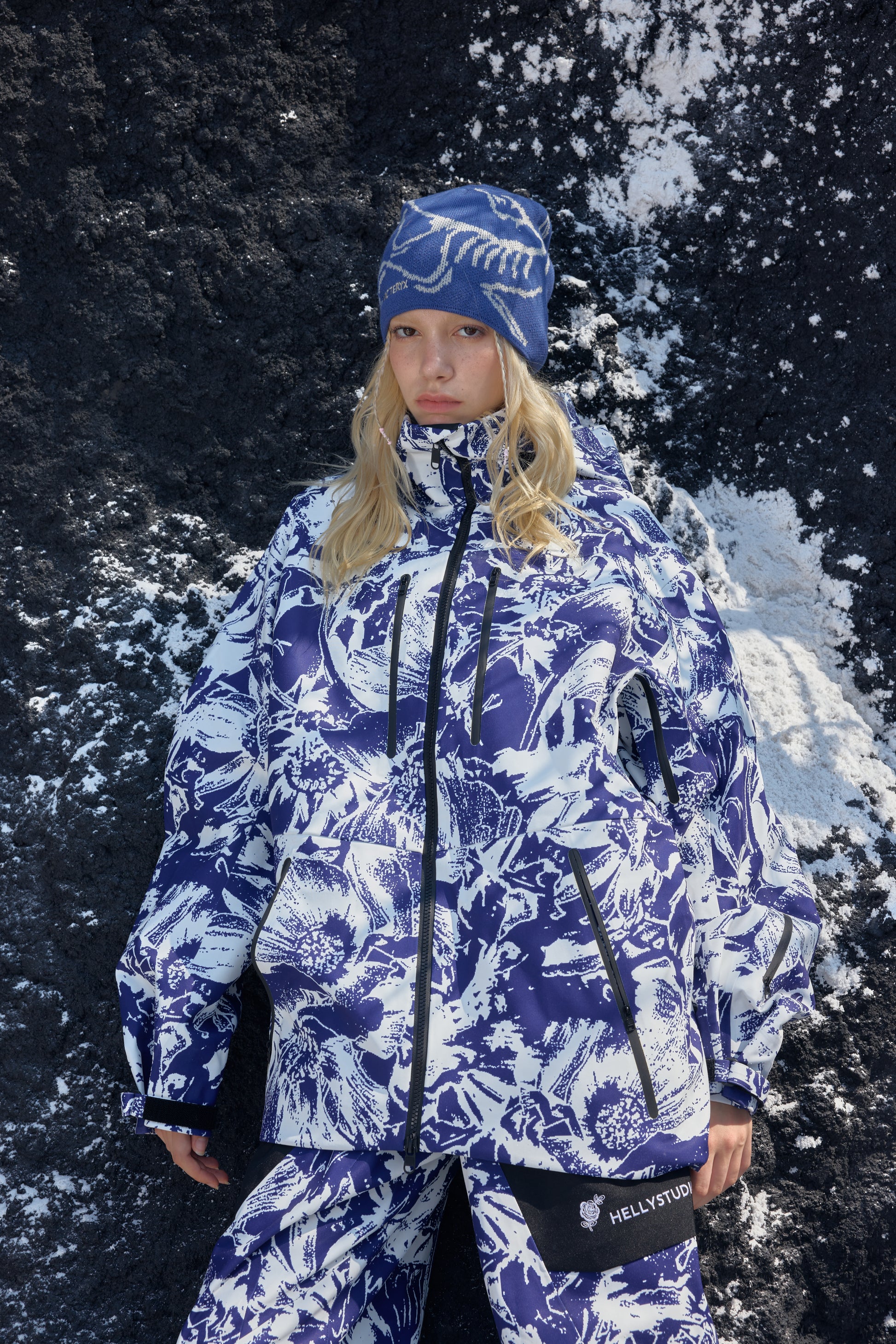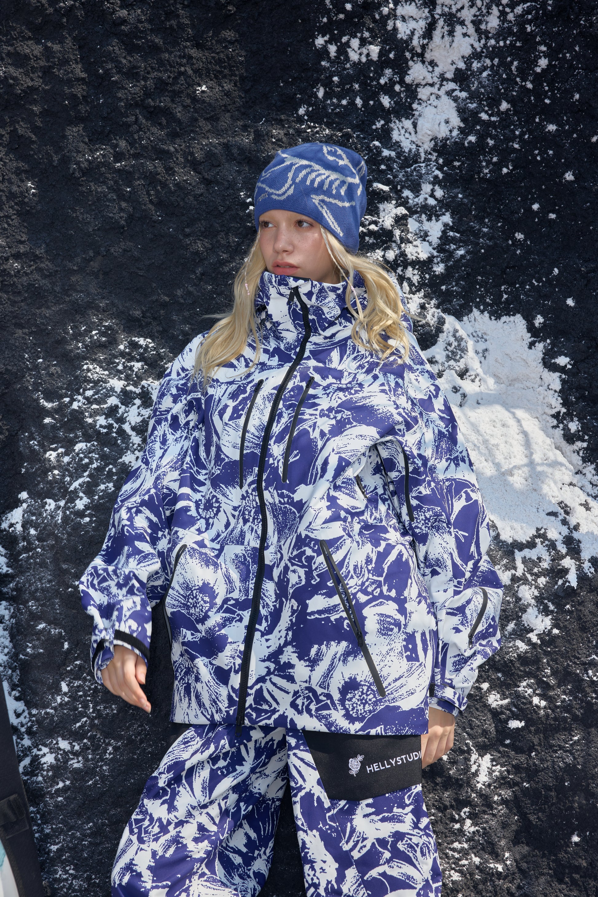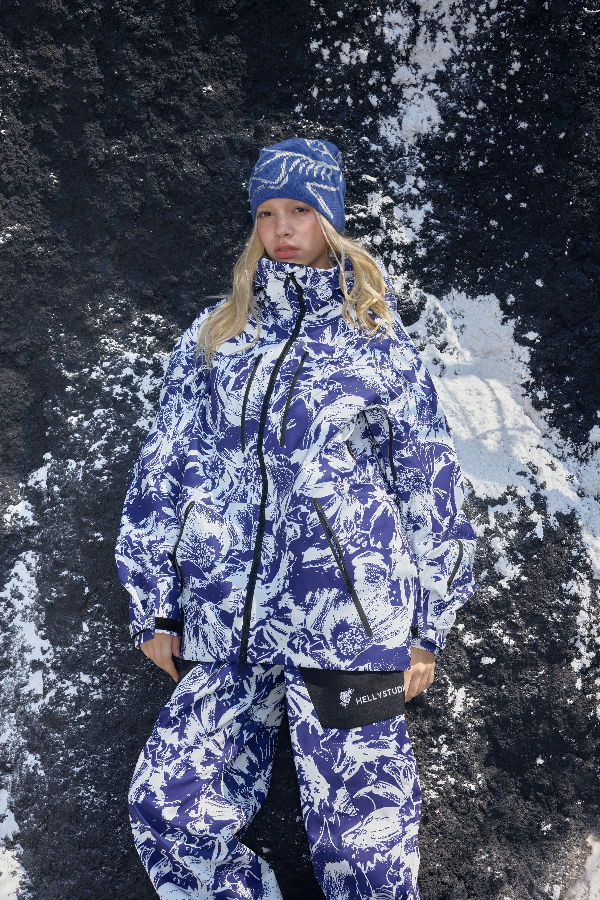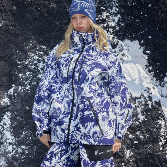 HELLYSTUDIO Blue and White Porcelain Style Ski Shell Jacket —— Uisex