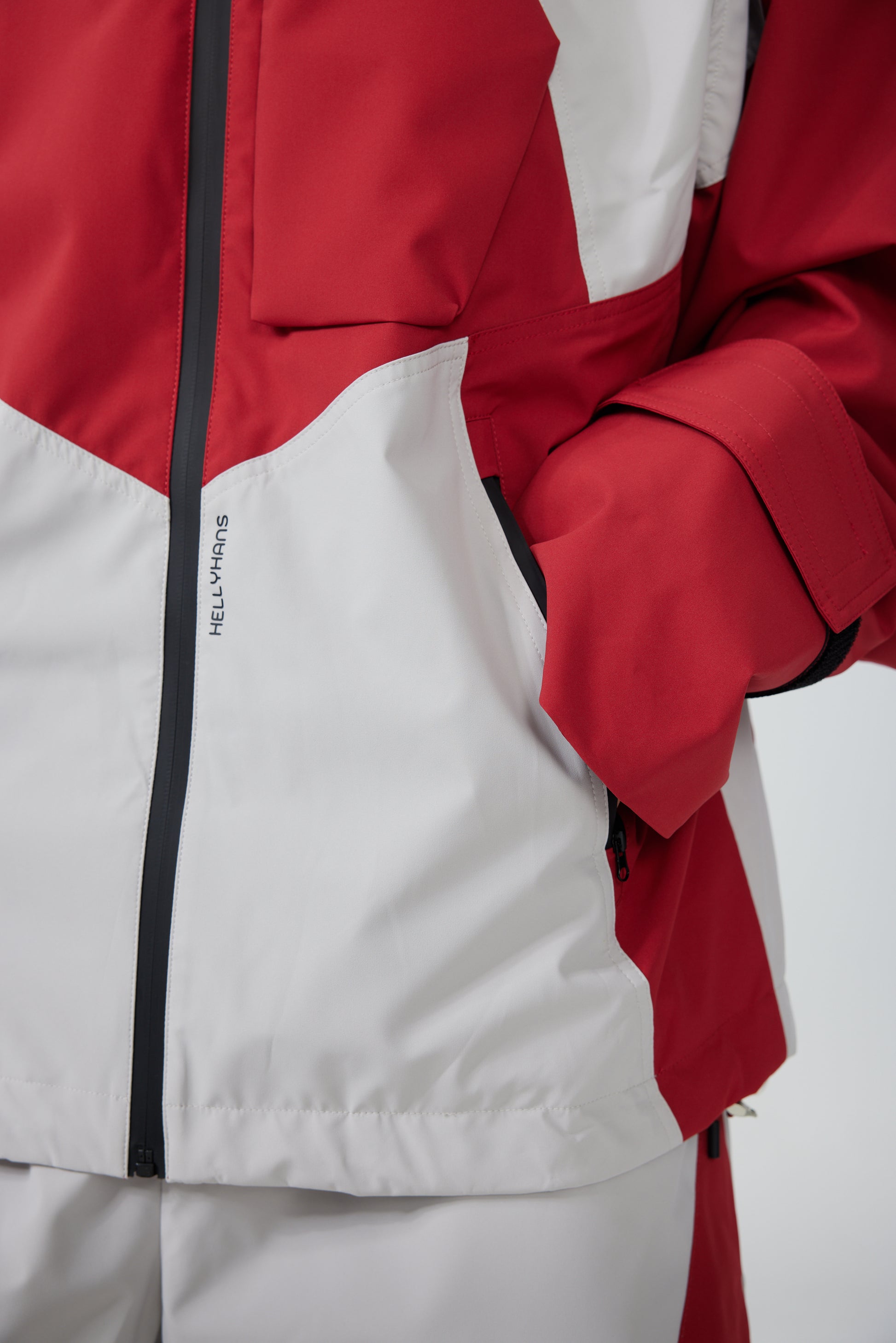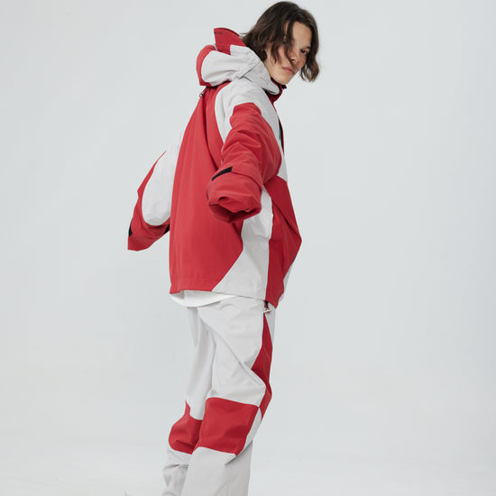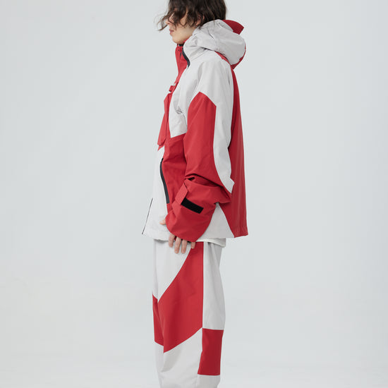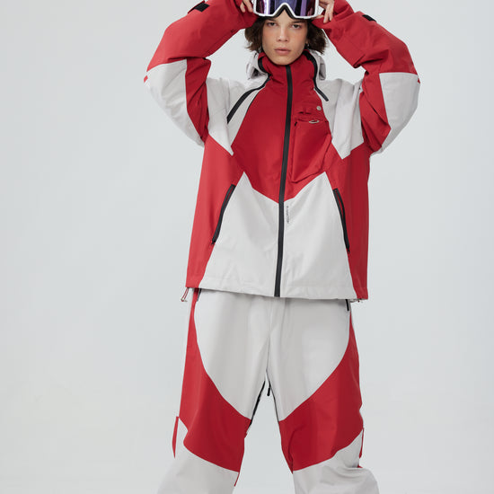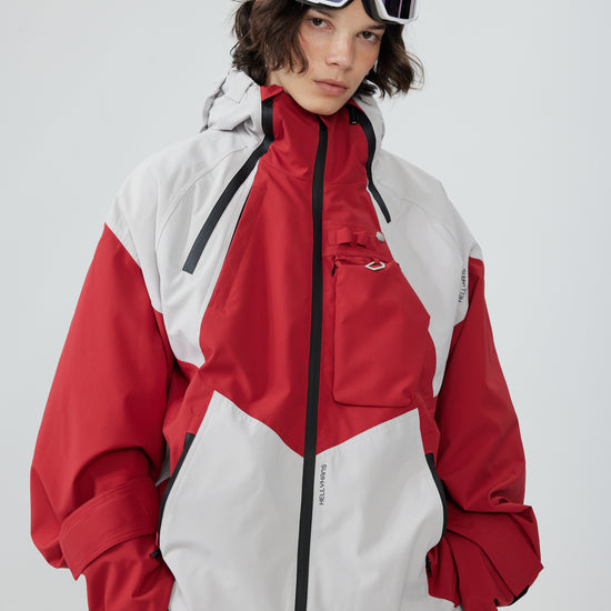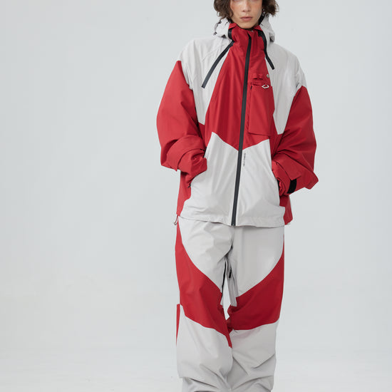 HELLYSTUDIO Grey Spliced with Red Baggy Snowboard Pants - Unisex