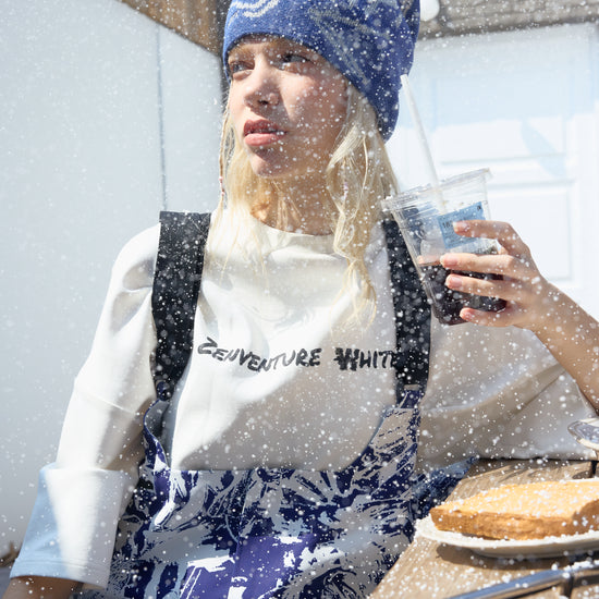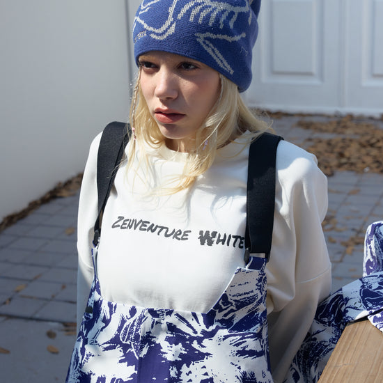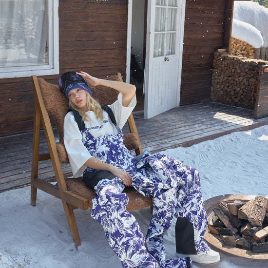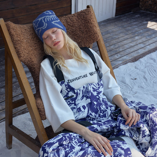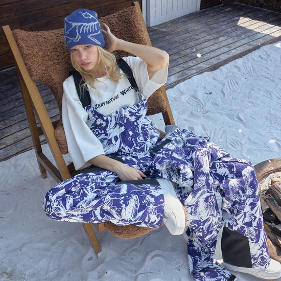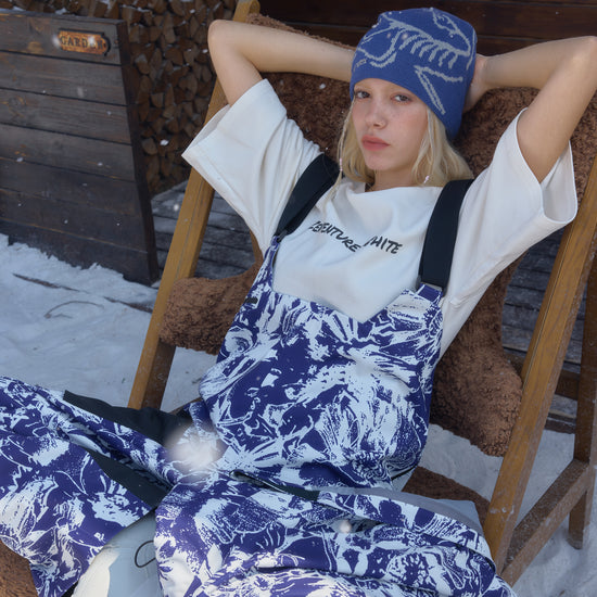 HELLYSTUDIO Blue and White Porcelain Style Ski Trousers Baggy —— Uisex