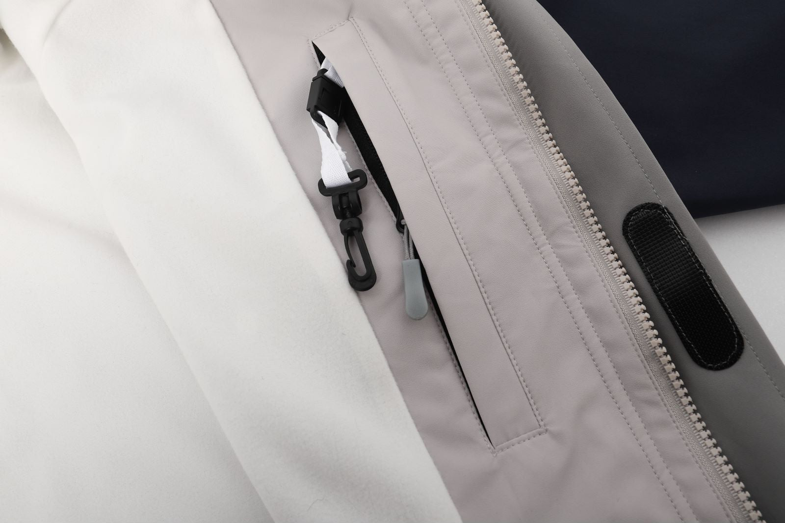 - Pockets: Internal media and goggle pockets, Two water repellent hand zip pockets, Sleeve pass pocket